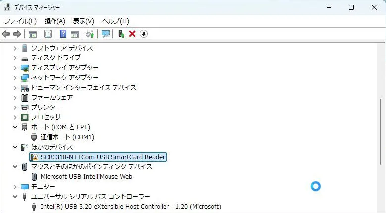 SCR3310-NTTcomは古いカードリーダで、Windows 10まではUSBに接続するだけで認識されて使用することができました。