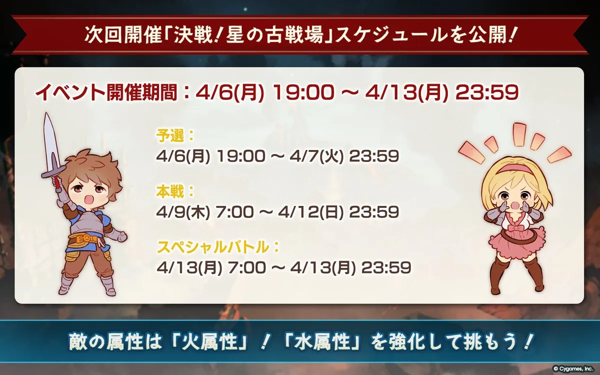 次の水有利古戦場は、2026年4月6日(月)~4月13日(月)の開催が発表されています。