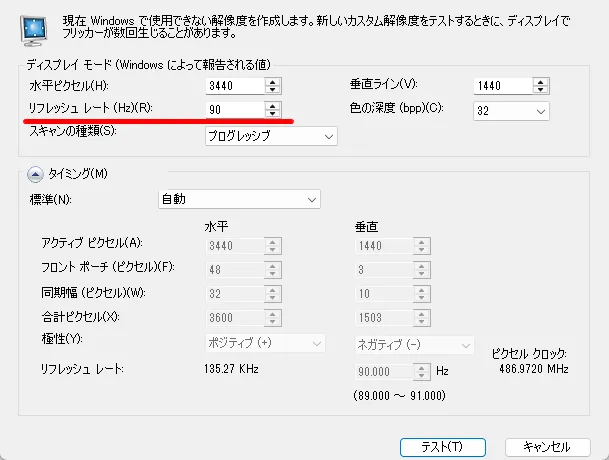 細かく調整して一番良いリフレッシュレートを探してみてください。