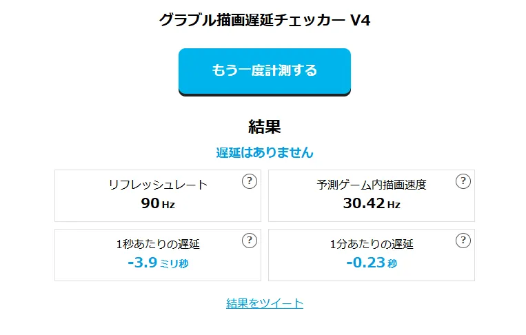 設定が済んだら下記サイトで遅延を確認しましょう(3回以上の計測を推奨します)。