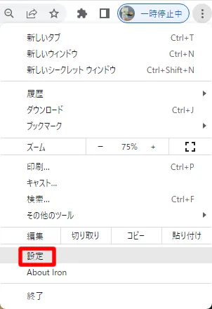 ブラウザの右上にある︙マークをクリックして、次のように設定します。