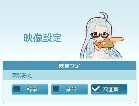 映像設定は、軽量にすると画像の読み込み速度が速くなりますが、グラフィックが相当荒くなります。