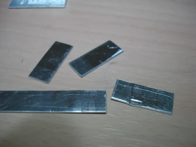 アルミアングル1mm×15mm×15mmの切れっ端を用意して、ケースのプレス部と同じように穴を開けていきます。
